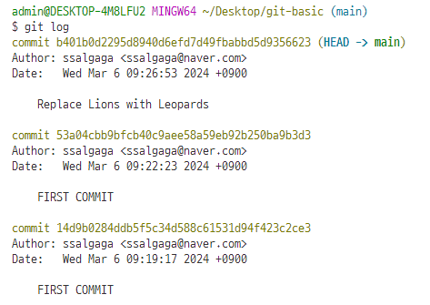 | Git 실습 :: 로그 확인 후 이전 버전으로 돌아가기 (0) | 2024.05.04 |