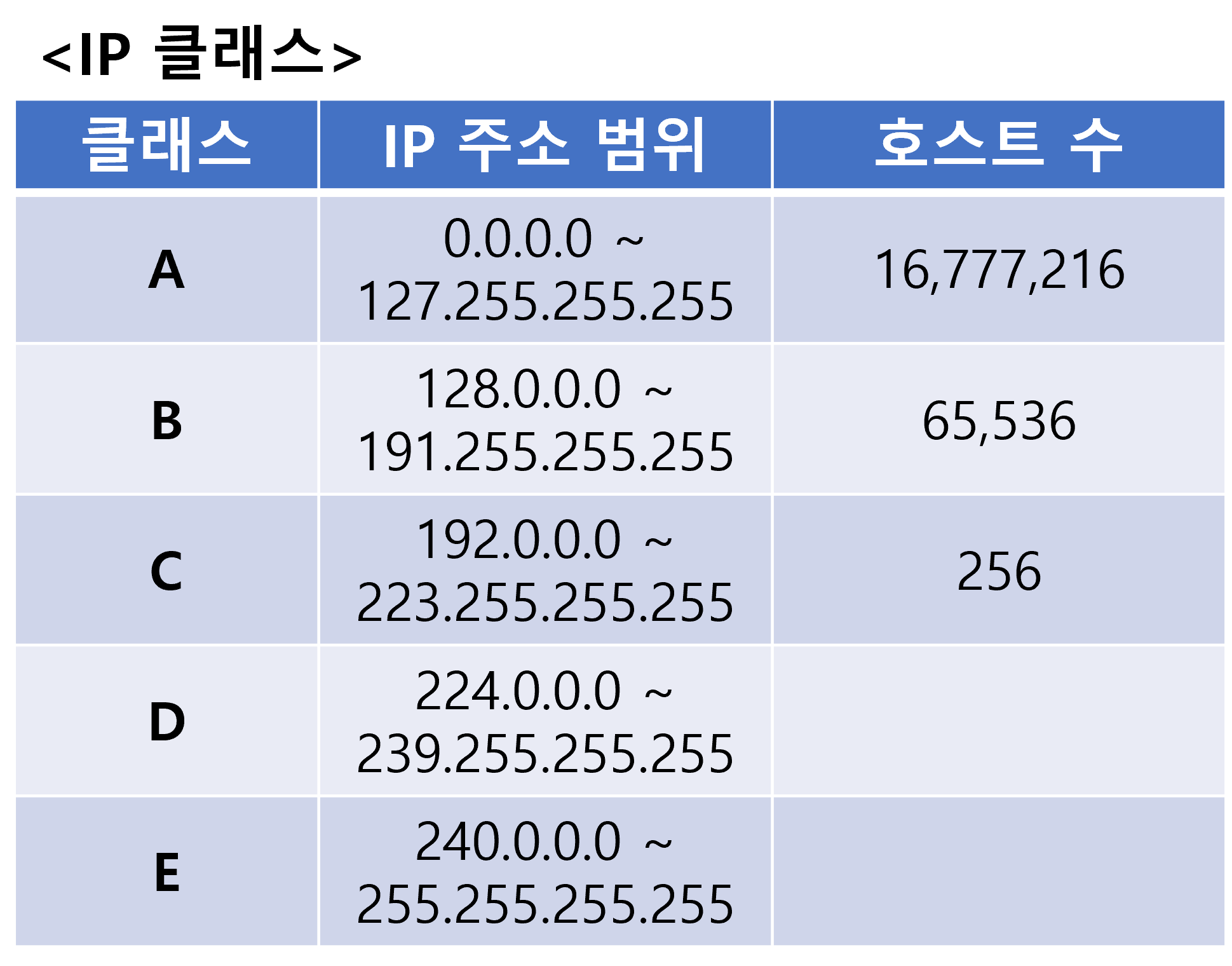 - 글로벌 IP 주소: 인터넷에서 사용되는 주소클래스 주소