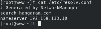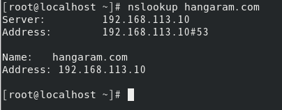 nslookup 명령어: DNS 서버로 등록한 192.168.113.10이 나와야 함.