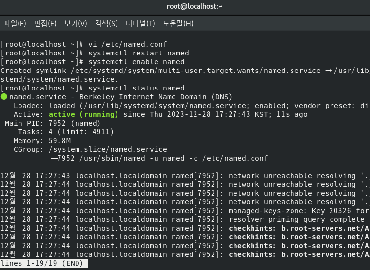 >> 작업 과정에 오류가 없으면 named 서비스 재가동
