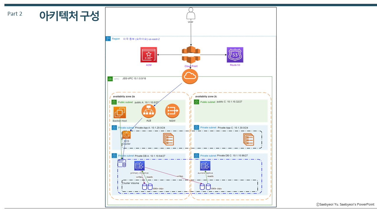 AWS 클라우드를 이용한 티켓 예매 사이트 구축 프로젝트 기간: 2024년 2월 2일 ~ 2024년 2월 8일 팀원: 정OO , 성O, 최OO 프로젝트 목적 글로벌 인프라 기반으로 빠른 서비스 및 콘텐츠 제공 높은 탄력성으로 신속한 트래픽 증가 대응 AWS가 제공하는 다양한 기능 탐구로 AWS 서비스 이해도 증가 AWS 아키텍처 설계로 아키텍처 구성 능력 증가 기술 범위 다수의 이용자를 포용할 수 있는 서버 구성 CloudFront를 이용한 빠른 콘텐츠 전송으로 원활한 티켓 예매 서비스 제공 고객과 결제 정보, 예매 대상 정보를 데이터베이스 관리 시스템으로 관리 사용자가 지정된 서버에 접속하도록 로드밸런서 기능 이용 특정 시간대에 증가하는 이용자를 효과적으로 관리하기 위해 오토 스케일링 기능 구현 회고록..